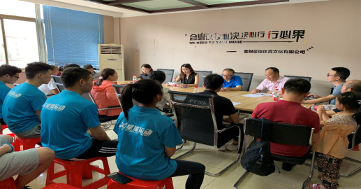为了深入贯彻习近平总书记教育思想提升教师应用型人才培养和科学研究水平,拓宽校企协同人才培养途径,深化校企合作力度,2019年7月13日,社会体育指导与管理系教师在经理何忠与副经理张华江的带领下,到襄阳星璨体育文化有限公司进行实践基地调研与校企合作研讨,襄阳星璨体运动公园的总经理王银、人事经理李阳以及教练员代表、全体实习生参与了此次调研与校企合作交流与研讨。