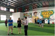 最后,社会体育指导与管理系的全体老师在公司领导与教练的陪同在在星粲运动公园进行了参观,与公司领导、教练与实习生们进行了深度交流。