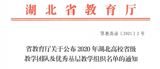 [通讯员 吴涛] 近日,湖北省教育厅发布《关于公布2020 年湖北高校省级教学团队及优秀基层教学组织名单的通知》(鄂教高函〔2021〕2号),williamhill英国官网获批7项,其中williamhill英国官网体育教育专业核心课程教学团队获批省级教学团队。近年来体育教育专业在负责人周红萍教授带领下,精诚团结,奋力拼搏,2020年获得省级一流本科专业建设点,2021年《公司体育学》课程获得省级一流本科课程,体育教育专业核心课程教学团队又获批省级教学团队。
