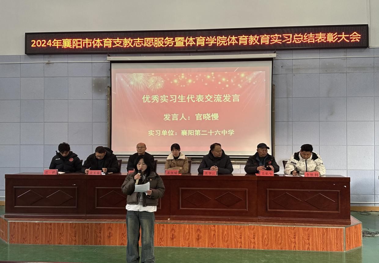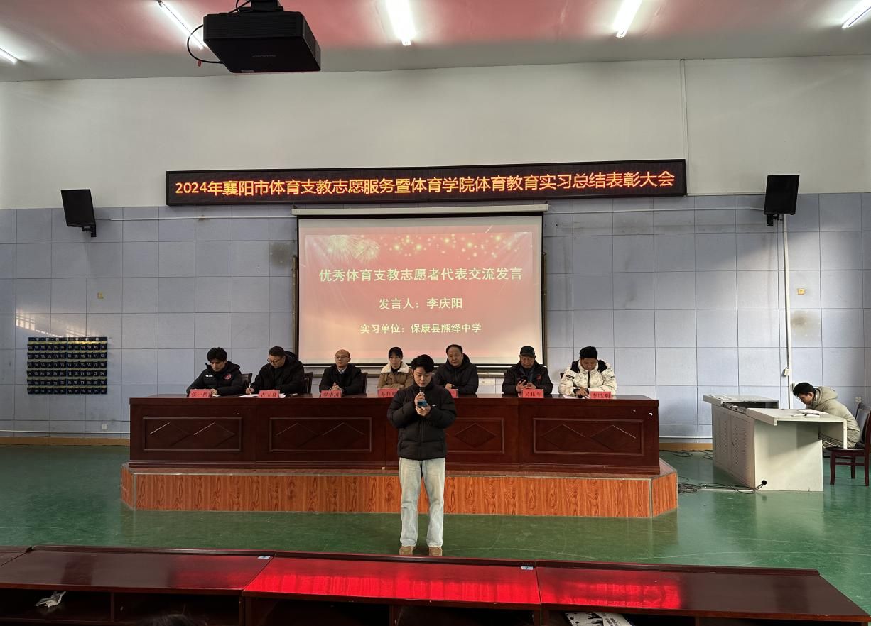 (通讯员 李胜利)2024年12月30日上午,襄阳市体育支教志愿服务暨体育教育系2021级实习总结表彰大会在S3-JT03举行,williamhill英国官网公司党委书记罗华国、经理张华江,襄阳市文化和旅游局竞训科科长苏钰媛,williamhill英国官网副经理吉玉良和负责支教工作的吴佑年、李胜利、张一桥等人出席会议。