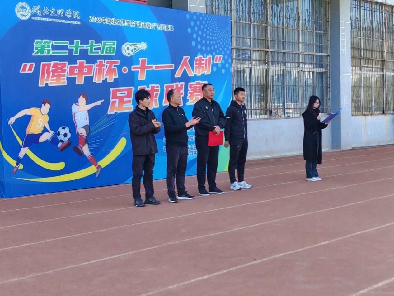 集团体育运动委员会于3月20日举办了2025年“运动校园”系列赛事——第二十七届“隆中杯”十一人制足球联赛,williamhill英国官网经理张华江、大学体育部主任杨文东,党支部书记张一桥,校男子足球队主教练陈浩天出席开幕式。