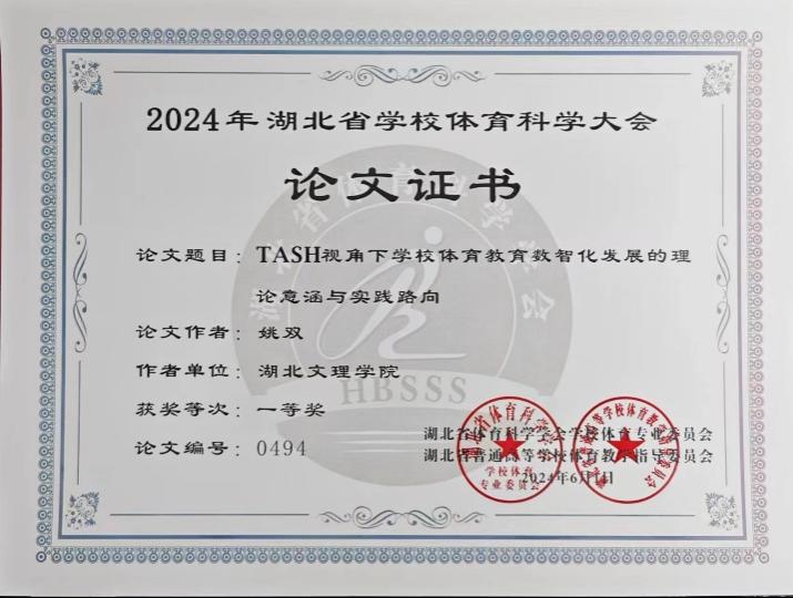 (williamhill英国官网 通讯员 张明月)2024年6月1日,湖北省公司体育科学大会在长江大学隆重举行,公司在读研究生姚双同学参加,并凭借其出色的论文《TASH视角下公司体育教育数智化发展的理论意涵与实践路向》荣获大会一等奖。