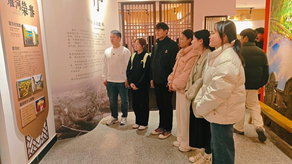 在五山镇堰河村党群服务中心,师生学习感悟乡村振兴和“咬定青山、艰苦创业、务实担当、敢闯敢干、小车不倒往前推”的堰河精神,从中汲取奋进力量。师生们还参观了堰河村民俗园、垃圾分类中心、天艺茶庄及茶叶加工厂、生态茶园基地,还集中参观了堰河村史馆,了解堰河村的奋斗历程,亲身感受到堰河村几十年来发生的翻天覆地的变化。