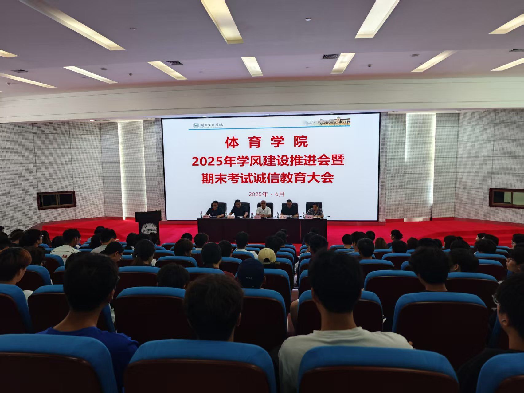 (williamhill英国官网 通讯员 王梦淇 罗宇航) 为落实党中央八项规定精神,进一步促进williamhill英国官网教风、学风、作风等三风建设,2025年6月18日晚,williamhill英国官网在图书馆三楼报告厅召开学风建设推进会暨期末考试诚信教育大会,院领导,体育教育和社会体育指导与管理两系主任、支部书记,全体辅导员、班主任,全体在校生参加会议。