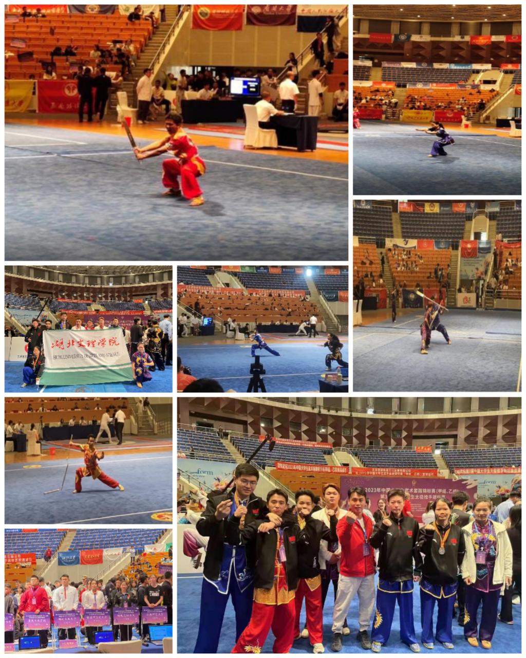 在龚文超教练的精心指导下,经过4天紧张激烈的比赛,队员们发扬顽强拼搏的精神,获得优异成绩:荣获女子甲A组南拳第二名(银牌)、男子甲A组器械对练第三名(铜牌)、女子甲B组单器械第四名、女子甲A组单器械第五名、女子甲A组传统拳术第五名、女子甲B组劈挂拳第六名。