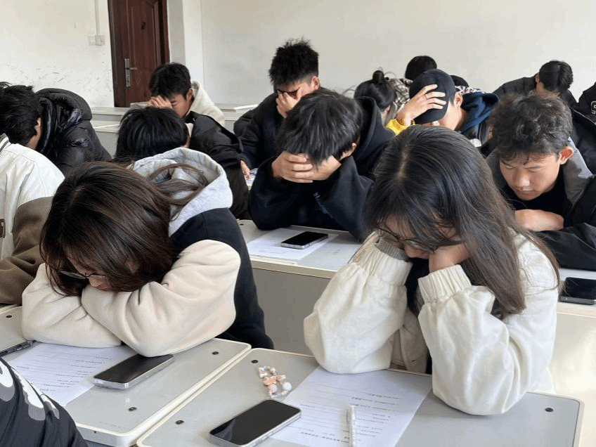 此外,还设置了冥想环节,伴随着一阵悠扬的音乐大家加入了冥想环节,在这五分钟的时间里同学们认真深思,将自己最近最真实的感受释放出来并填写在提前发放的表格上,这种无声的抒发让同学们的情绪得到释放。