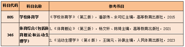 复试科目: 1. 综合素质测试 2. 专业理论课复试《体育教学论》 参考书目:《体育教学论》(第四版),毛振明主编,高等教育出版社,2024。 3. 运动专项技能复试(项目不限) 4. 外语听力口语测试 5. 同等学力考生需加试科目:《体育心理学》、《运动解剖学》 参考书目:1.《体育心理学》(第三版),季浏、殷恒婵、颜军主编,高等教育出版社,2016; 2.《运动解剖学》(第三版),杨桦主编,北京体育大学出版社,2021。 |